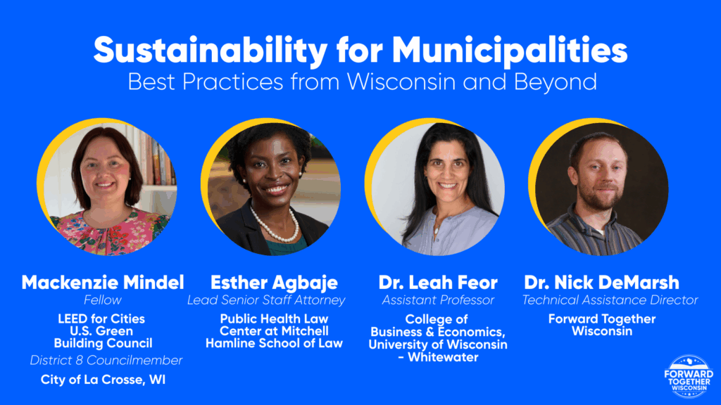 Join Forward Together Wisconsin on our next webinar, Sustainability for Municipalities: Best Practices from Wisconsin and Beyond.